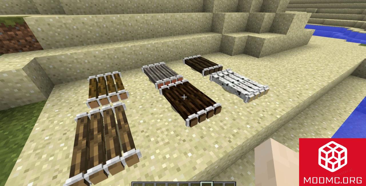 Этот мод добавляет в игру новый транспорт — плот, который можно скрафтить и использовать для путешествий по рекам, морям и океанам.