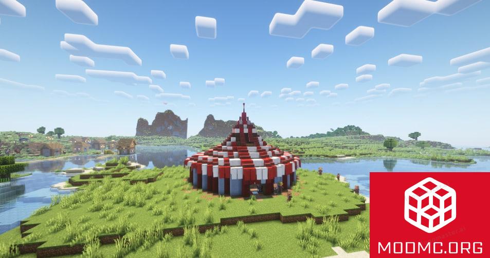 Мод на Цирк в Майнкрафт превращает скучные деревни в настоящие шоу-зоны. Палатки, огни, фокусы и новые NPC — всё это оживляет мир и делает его более весёлым. Если хочешь добавить в Minecraft атмосферу праздника и развлечений — этот мод точно стоит поставить.