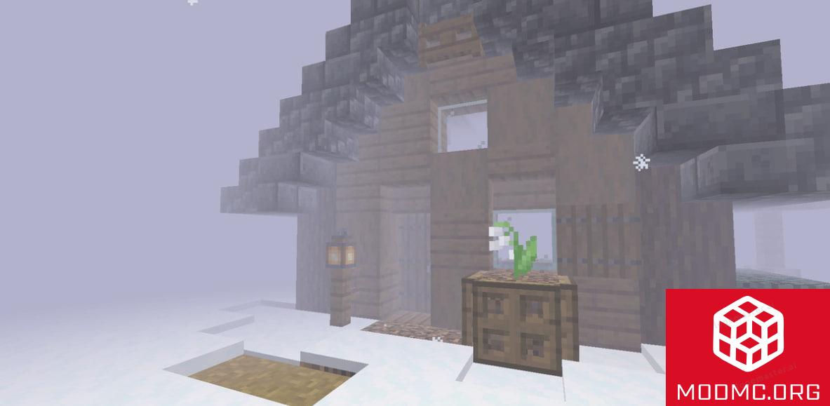 Deep Winter — это комплексное изменение климата мира. Забудь про стандартные биомы — теперь весь мир покрыт снегом, реки и озёра замерзают, а из облаков валит настоящая метель.
